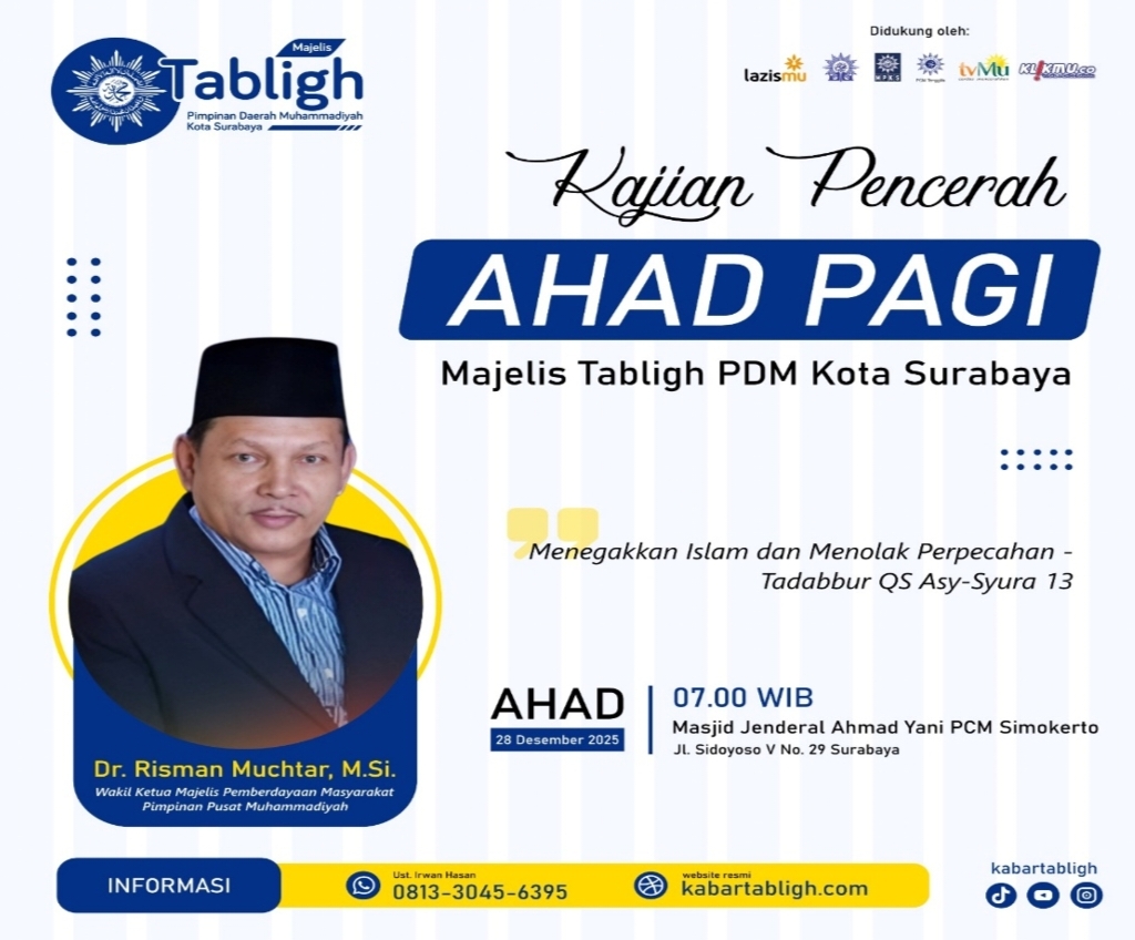 Lazismusurabaya.org – Suasana di Masjid Jenderal Ahmad Yani, Simokerto, terasa begitu sejuk dan penuh kekeluargaan pada Ahad pagi (28/12/2025). Ratusan warga Muhammadiyah berkumpul bukan sekadar untuk bersilaturahmi, melainkan untuk menyerap ilmu dalam Kajian Pencerah Ahad Pagi sekaligus menjadi saksi tuntasnya amanah sosial bagi para penjaga napas dakwah di Kota Surabaya. Hadir sebagai pembicara utama, Dr. […]