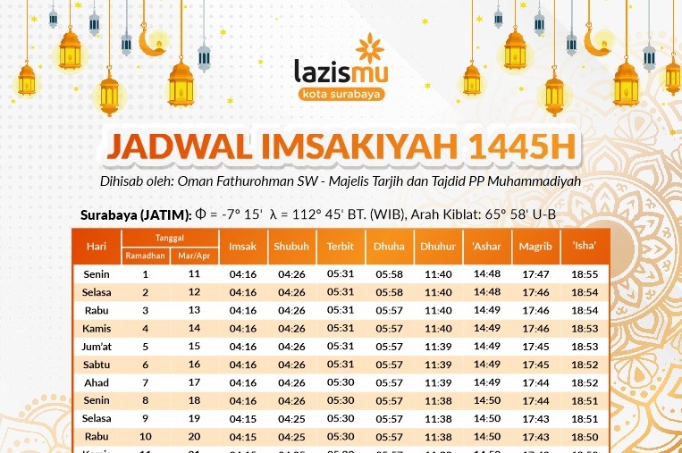 Download Jadwal Imsakiyah Ramadhan 1445 H/2024 M Untuk Wilayah Surabaya dan Sekitarnya
